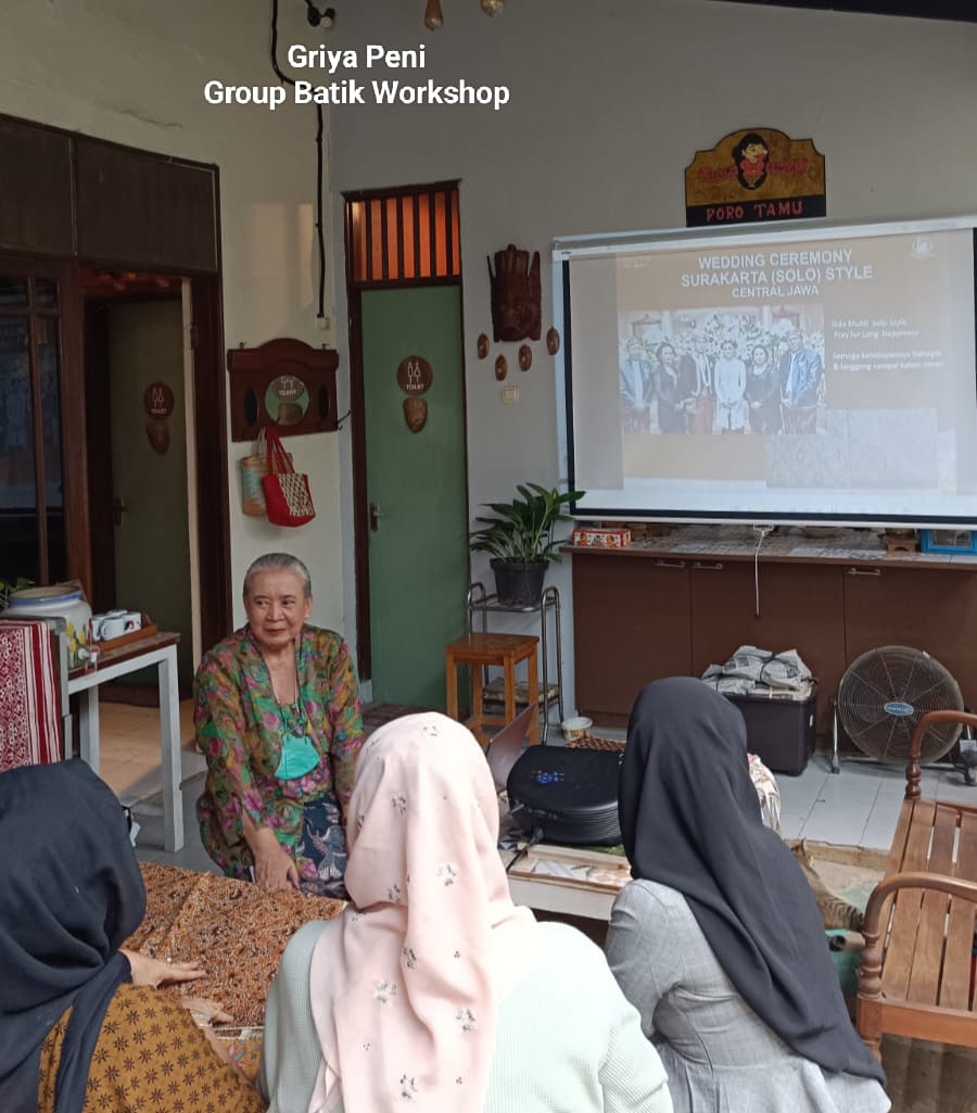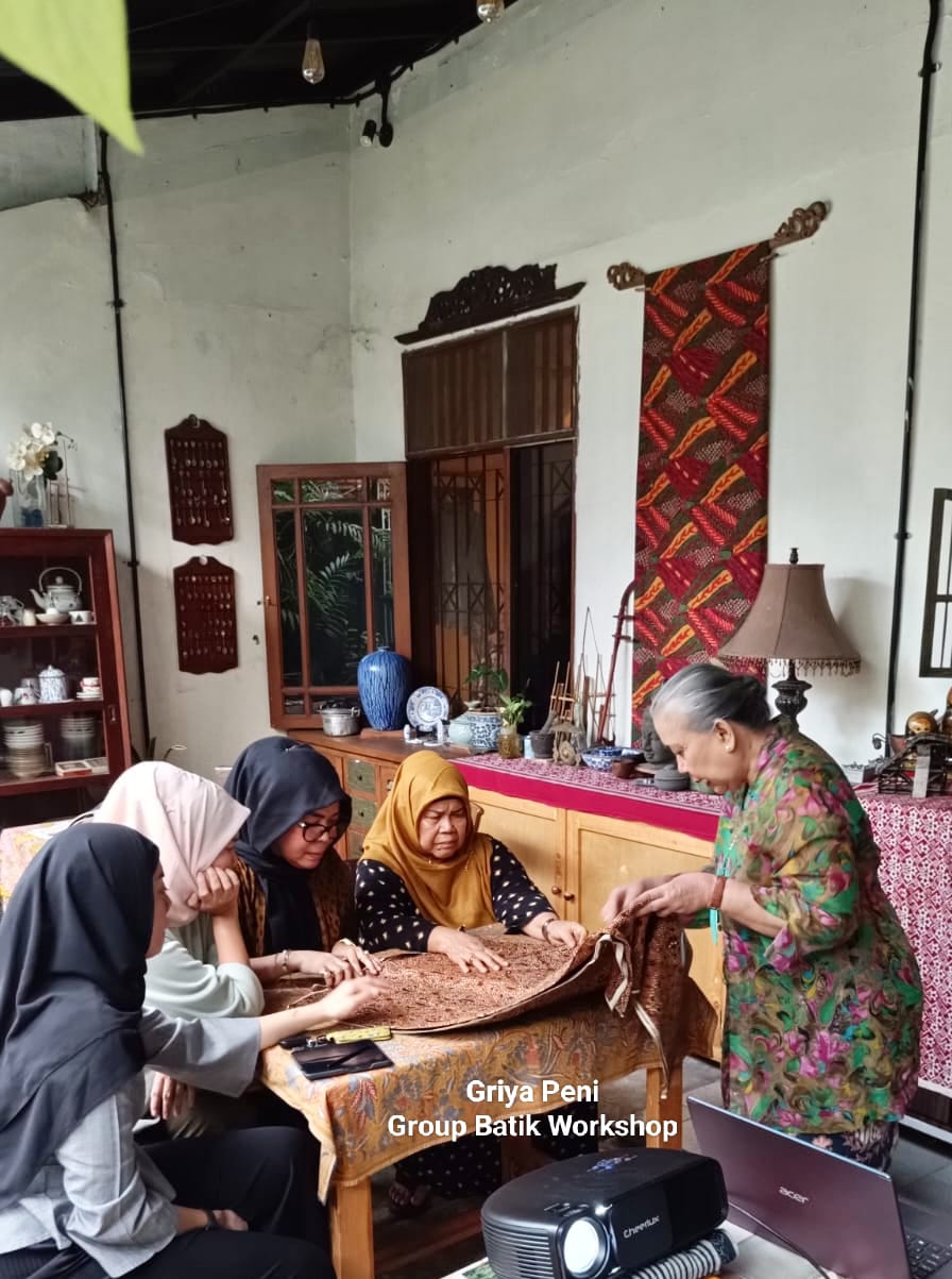 Griya Peni mengadakan Batik Workshop termasuk sharing tentang Sejarah & Filosofi Batik untuk berbagai group dan bagi para mahasiswa yang sedang melengkapi Skripsi ataupun Thesis nya.