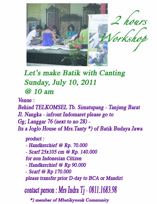 ————————————————————————–BATIK WORKSHOP – OCTOBER 2011 – FOR ALL BATIK LOVERS