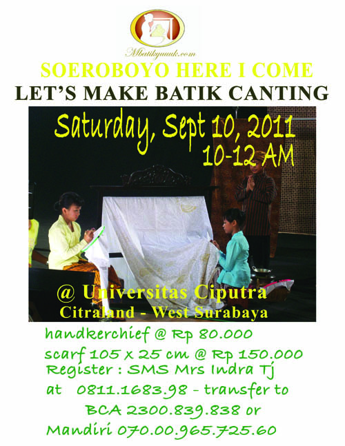————————————————————————————-AFTER I’D FITRI MBATIKYUUUK WILL VISIT ALL FRIENDS IN SURABAYA, PLEASE JOIN US FOR SHARING & MAKING BATIK